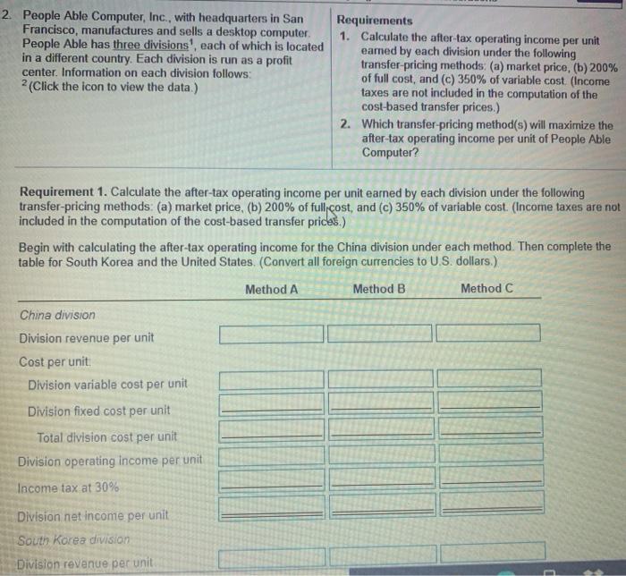 Solved 2 People Able Computer Inc With Headquarters In Chegg Com